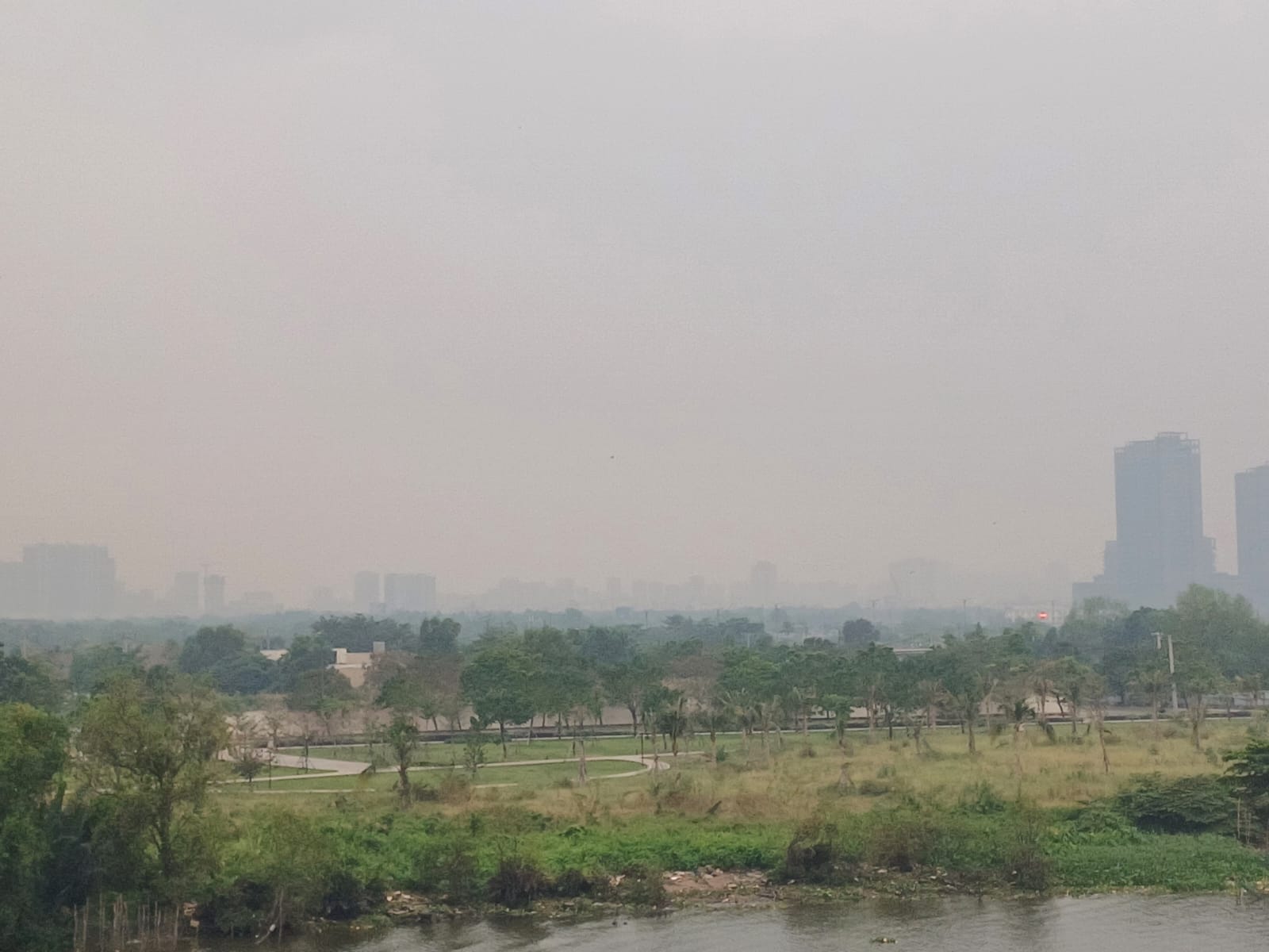 By 9 a.m., a pervasive milky white ambiance enveloped both Hanoi and Ho Chi Minh City, resembling fog yet indicative of a dry haze phenomenon attributed to air pollution.